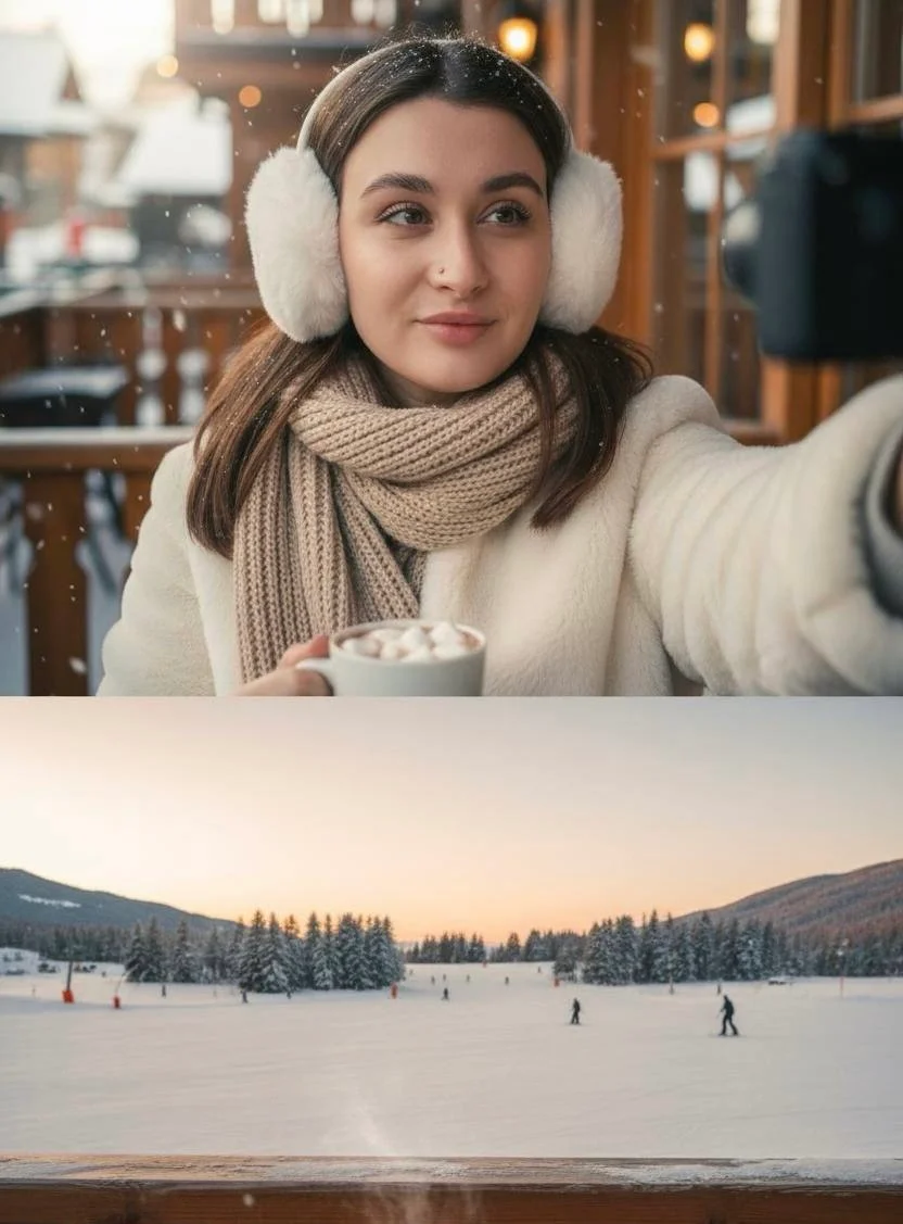 A quiet winter moment with a warm cup in my hands. Soft snow, cozy clothes, and calm thoughts. I love peaceful places, warm drinks, and enjoying simple moments. Winter makes everything feel slower, softer, and a little more magical 🤍